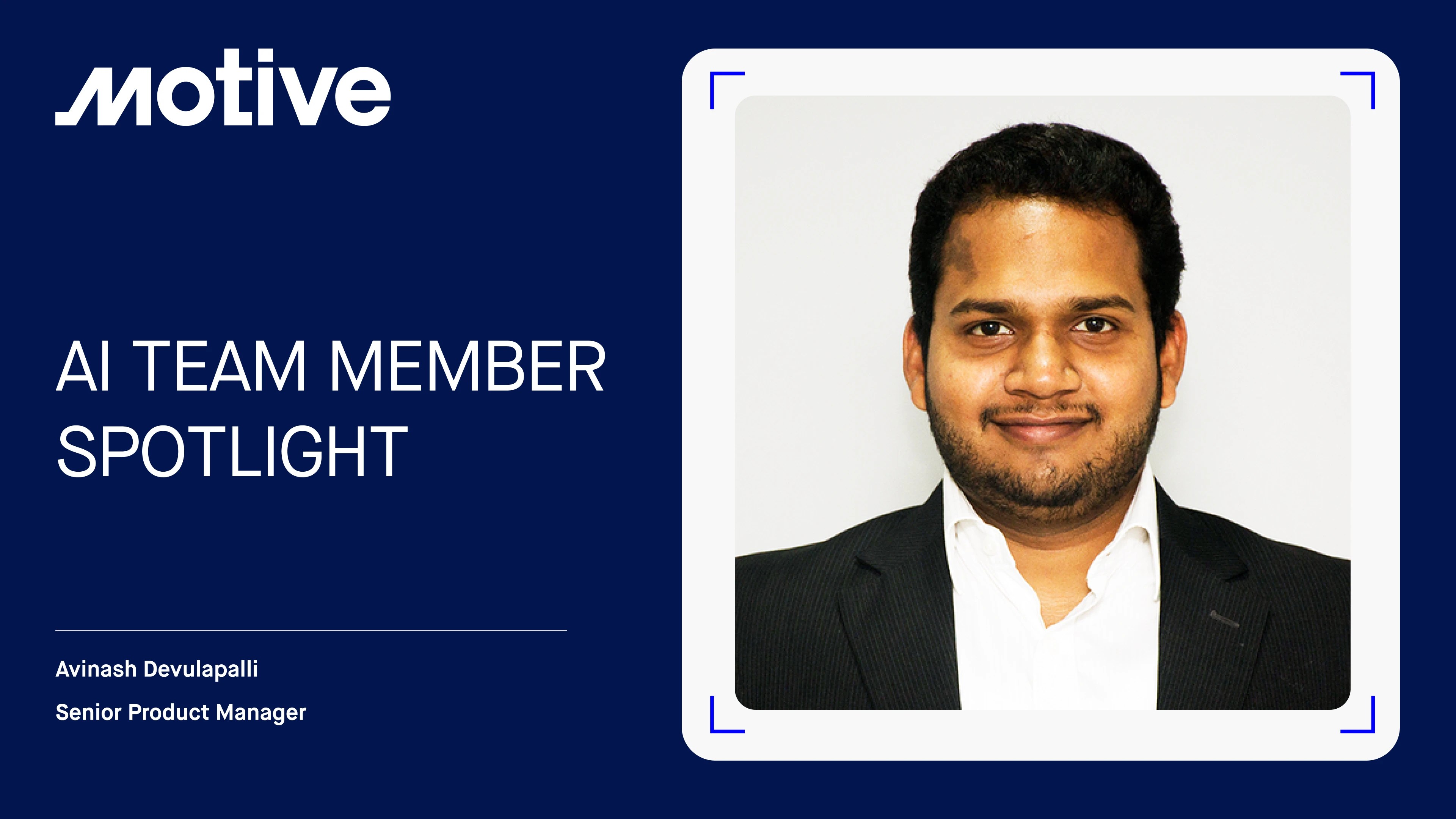 At Motive, our AI team is building technology that transforms how the physical economy operates — making fleets safer, smarter, and more efficient. In this AI Spotlight, we feature Avinash Devulapalli, a Senior Product Manager on the Safety Team, who shares how his work connects cutting-edge AI with real-world impact.