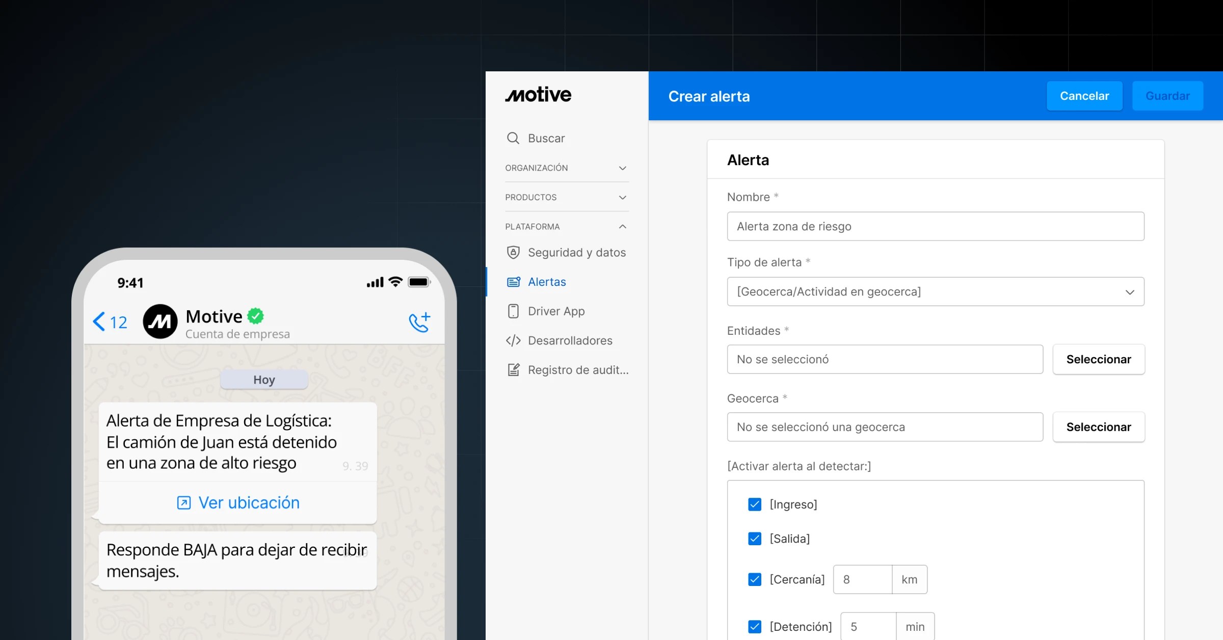 Motive ofrece dos tipos de alertas de zonas de riesgo basadas en geocercas: