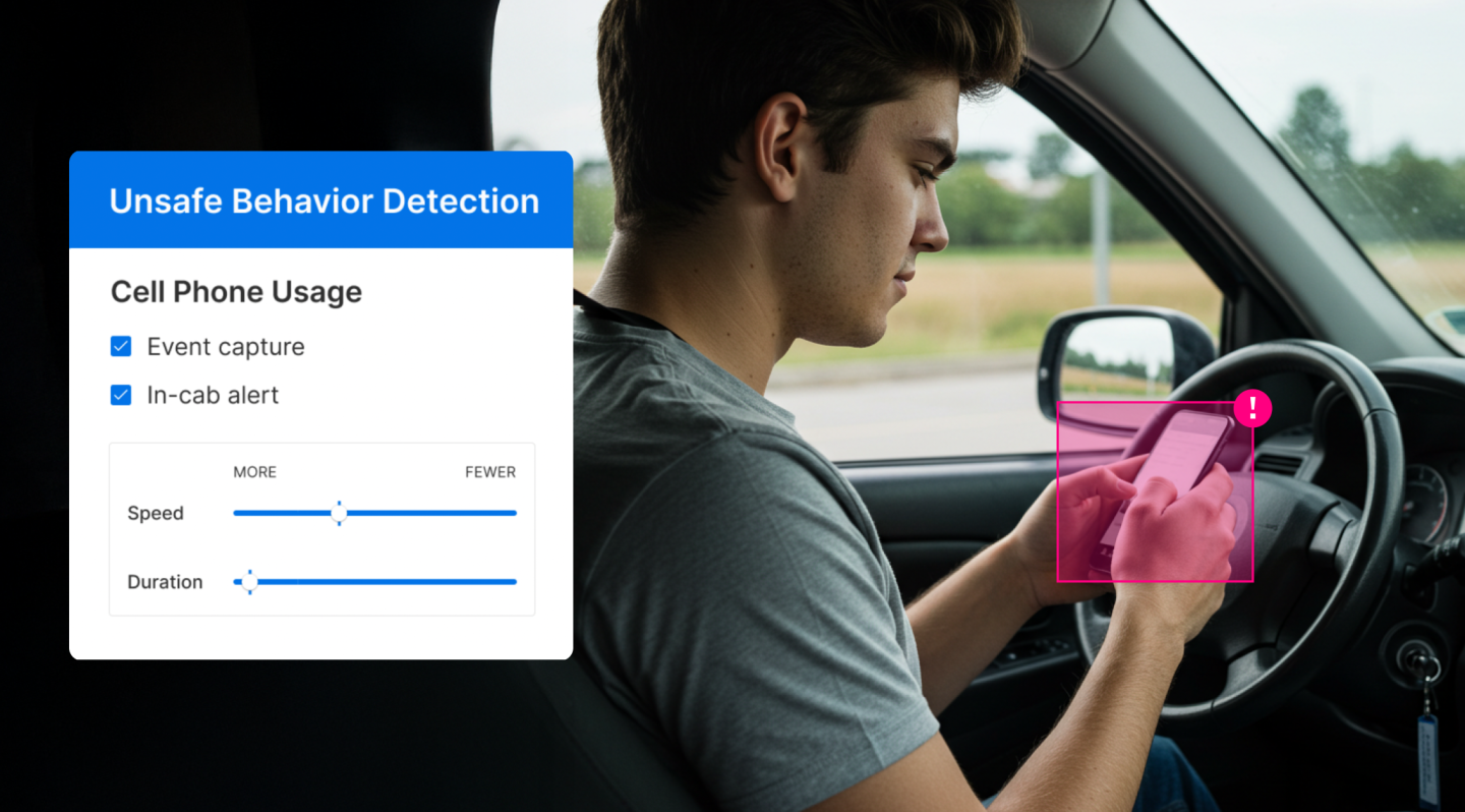 - Customize in-cab alert and event thresholds by vehicle, available mid-May. Make settings more sensitive for behaviors a driver struggles with, like cell phone use or close following.
