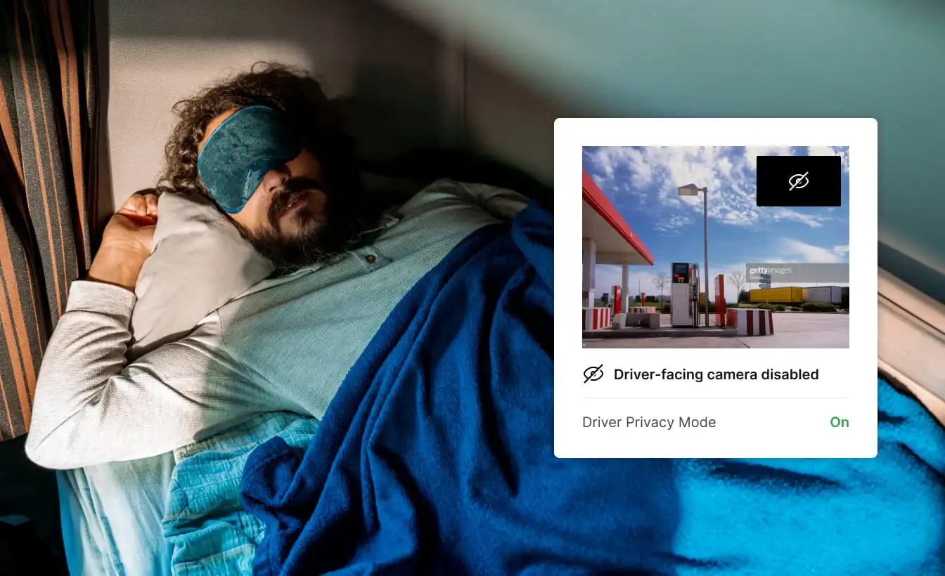 Most drivers don’t want dual-facing dash cams because they don’t want “spyware” in their vehicle. And that’s understandable. But there are dash cams on the market with key features to promote driver privacy. For example, the Motive AI Dashcam gives drivers the option to disable the driver-facing camera while they’re off duty. Admins can activate Driver Privacy Mode for the entire company, a group, or an individual driver. Motive automatically enables Driver Privacy Mode when the engine is off and during sleeper berth status.
