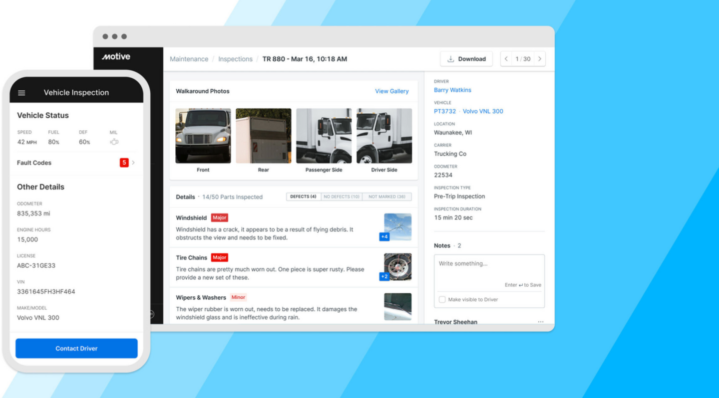 For mid-size and larger fleets, scaling operations requires scalable processes. That’s where digital tools come in. Platforms like Motive help automate preventive maintenance, track service history, and provide the insights fleet managers need to make smarter decisions.