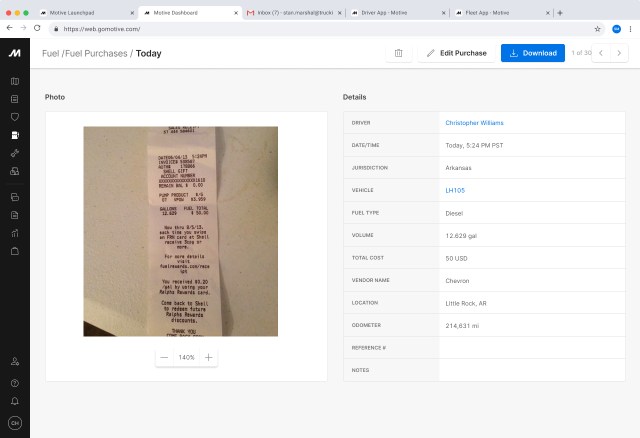 You can also view the details for each fuel purchase along with the receipt.