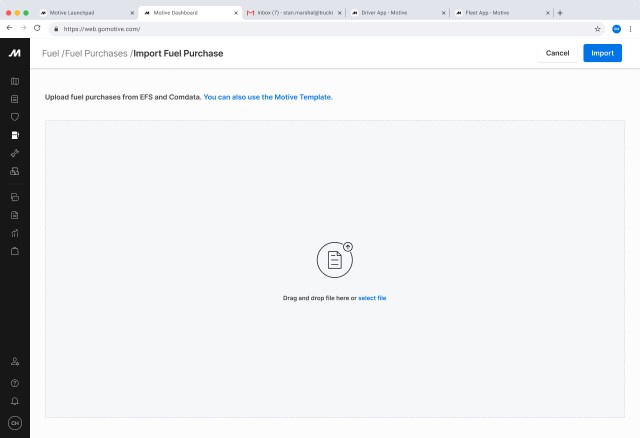 You can upload fuel purchase entries individually, or in bulk by uploading a CSV file with fuel purchase records for your fleet.