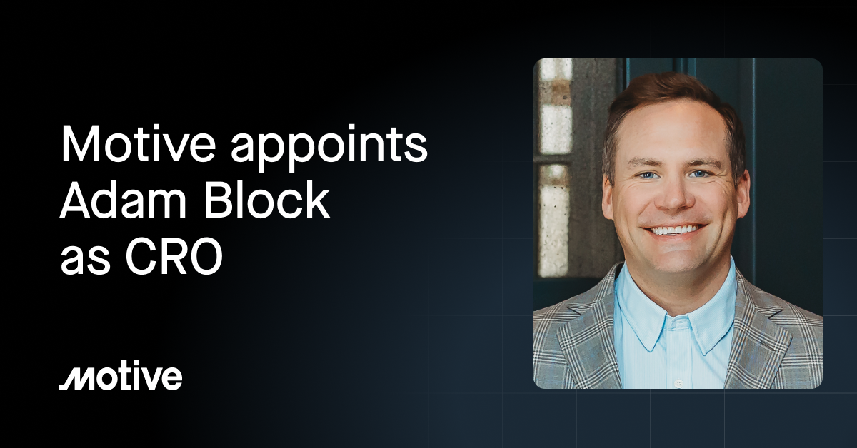 With more than two decades of experience leading high-performing sales teams, Adam Block has been instrumental in helping Motive scale its operations since joining the company two years ago. Most recently, Adam oversaw Motive’s strategic Enterprise sales efforts. Now, as Motive’s new Chief Revenue Officer, he’ll play a critical part in driving our next phase of growth.