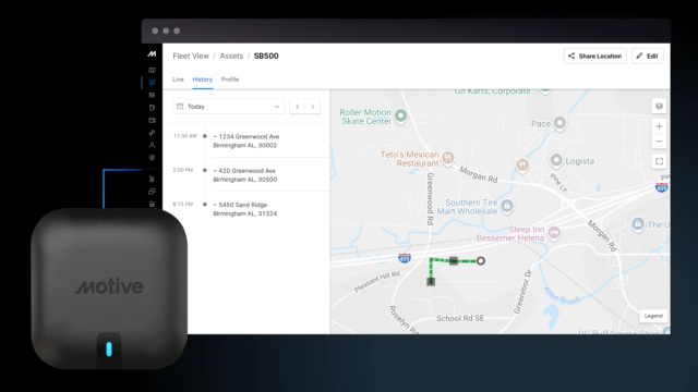 - Integrates directly into Motive’s Integrated Operations Platform, appearing alongside your vehicles, trailers, and cameras in the Motive Fleet Dashboard and Fleet App.
