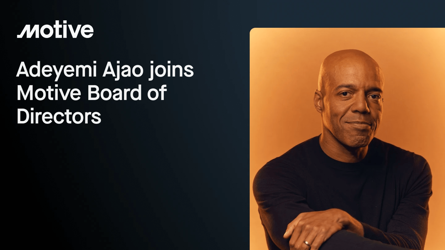 Motive appoints Adeyemi “Ade” Ajao to its Board of Directors. Ajao is an AI innovator and enterprise technology leader with a track record of founding and scaling global, market‑shaping technology companies — including Identified, an AI‑powered HR platform. Today, he is the co-founder and managing partner of Base10 Partners, a venture firm focused on investing in transformative technology companies.