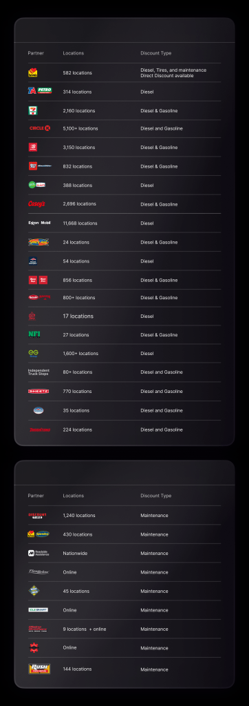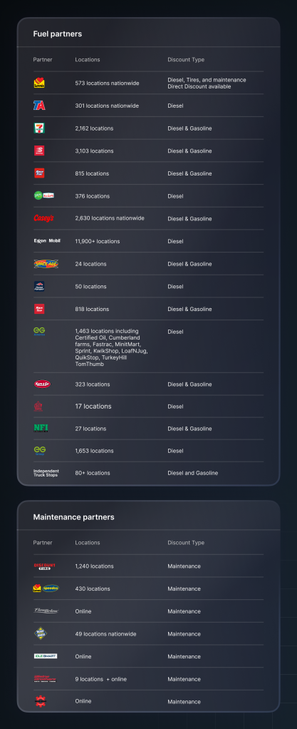 With fuel costs accounting for up to 40% of expenses and prices constantly fluctuating, it’s crucial for vehicle-based businesses to manage their fuel, repair, and maintenance costs effectively. The Motive Card is tailored to help with these challenges . With access to over 35,000 savings partner locations nationwide, Motive Card customers benefit from significant rebates on fuel, maintenance, and more. Furthermore, we’re continuously expanding our network and adding new partners, including recent additions like Circle K, Sheetz, and Motive Roadside Assistance.