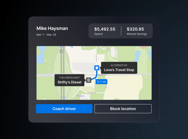 Our new Missed Savings feature gives Fleet Managers visibility into drivers’ fueling choices, showing exactly where and when savings were missed. Critically, managers can assess the financial impact of these missed savings through data provided by Motive in automated personalized emails and the Motive Dashboard. This data-driven approach empowers Fleet Managers employing fleet fuel management best practices to correct these habits by coaching drivers to make more cost-effective fueling choices, and even block locations known for higher prices.