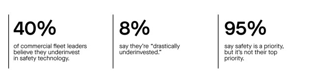 Safety technology offers a way out of this epidemic, but Motive’s State of Safety Report shows that many physical economy leaders are underinvested in safety technology, with 8% saying they’re “drastically underinvested.” Ninety-five percent of commercial fleets say safety is a priority, but it’s not their top priority.