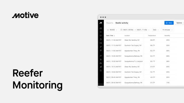 Get real-time visibility into the temperature, humidity, and telematics of your temperature-controlled cargo. Connect to your Thermo King units or Motive Environmental Sensor.