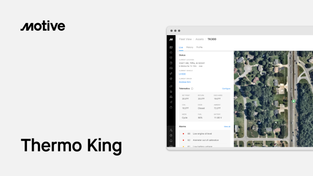 Remotely control and monitor telematics and temperatures of your Thermo King reefer units in the Motive Dashboard.