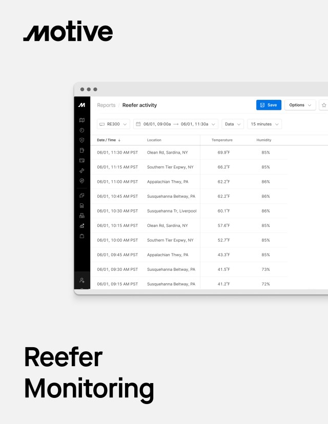 The Motive Reefer Monitoring solution integrates the management of your reefer trailers into one operation platform. Directly connect Thermo King refrigeration units to the Motive Asset Gateway Solar, or add wireless Motive Environmental Sensors to monitor your fleet.