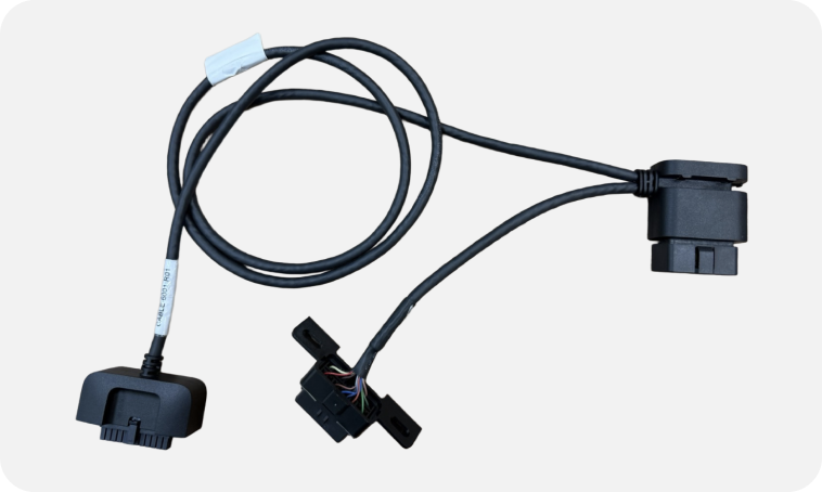 Plug the provided cable into your vehicle’s diagnostic port. Connect the AI Dashcam Plus through the vehicle adapter.
