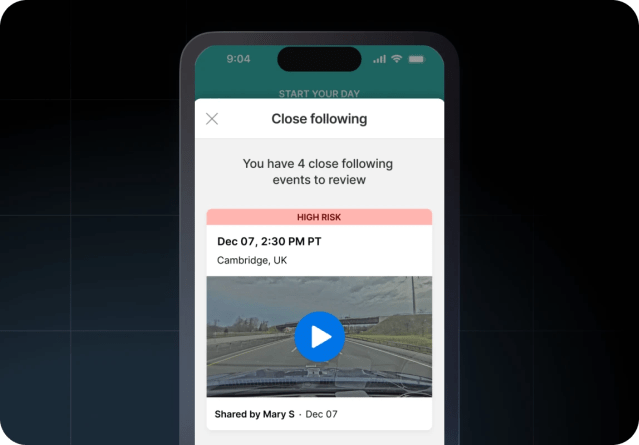 Drivers can push the button on the camera to instantly record and share video directly with their safety team.