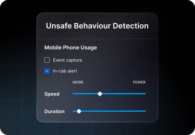Customise the safety experience based on your programme’s needs. Choose which events to detect and set thresholds for each.