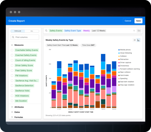 Make confident decisions faster with Motive Analytics, built within the Motive Dashboard. Access all your fleet data in one place, uncover insights instantly, and create custom reports with ease. Visit our Motive Analytics page or contact your Motive representative to get started.