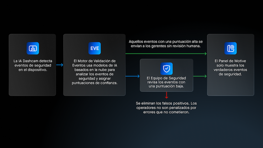 Este enfoque de validación de eventos, que combina modelos de IA en la nube con la revisión humana, es exclusivo de Motive y está incluido para todos los clientes sin costo adicional.