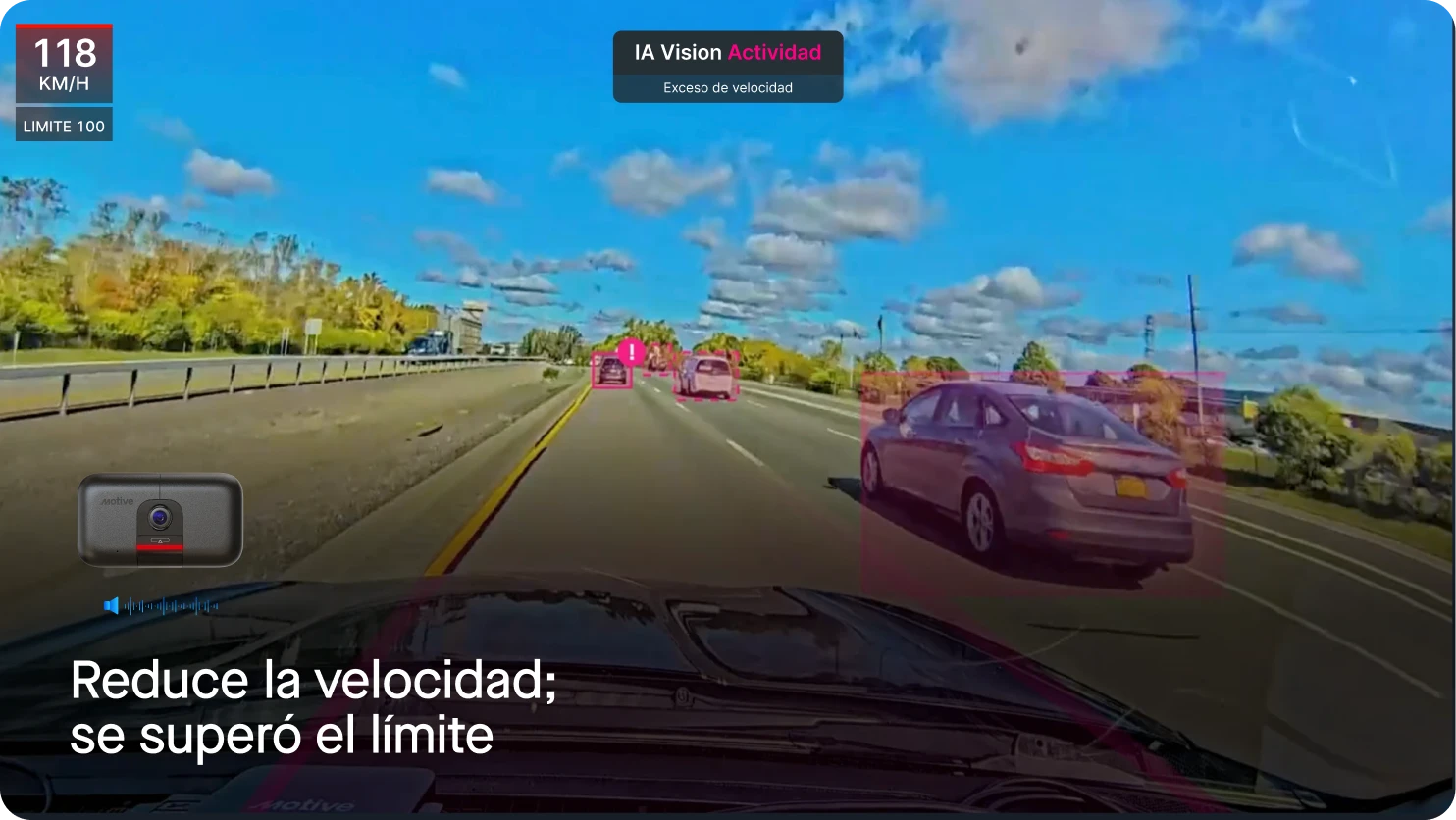 Reduce la conducción arriesgada, ofrece retroalimentación en tiempo real y reconocimiento positivo a los conductores, y crea una cultura de seguridad y confianza.