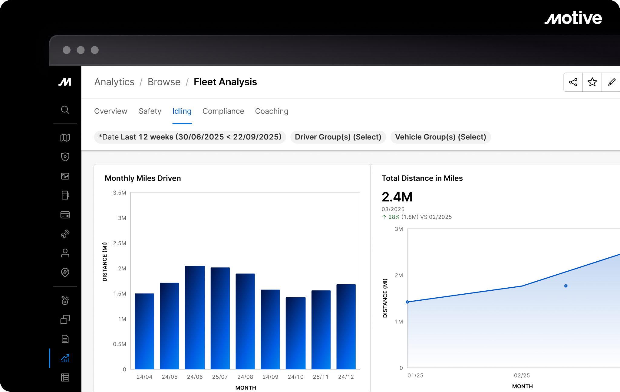 From fleet safety to fuel efficiency to tracking and telematics, Motive Analytics can help safety and operations teams quickly see what’s happening and take action right away. Learn more about the Motive platform and how it can help UK teams reduce fleet costs, improve safety and optimise performance. Read more about Motive Analytics in our blog post.
