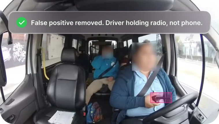 False positives happen when AI wrongly flags safe situations as risks. EVE, Motive’s Event Validation Engine, removes false positives so that you don’t have to, ensuring drivers aren’t unfairly penalized and managers can focus on real issues.