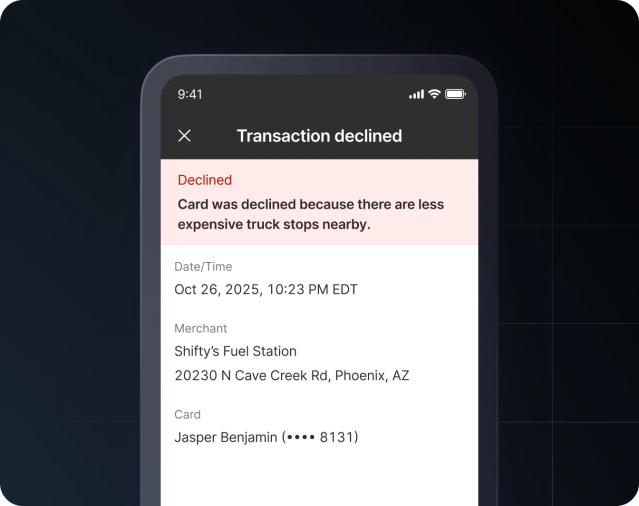 Fleet admins can also block specific merchants, ensuring drivers can’t use their Motive Card at those locations.