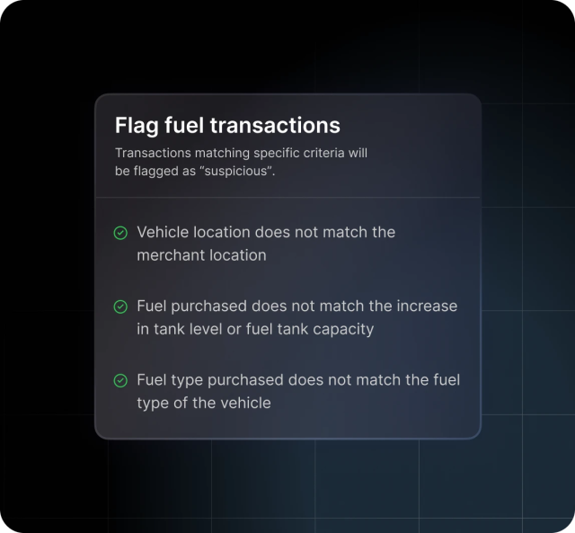 We’ve measure our accuracy to be more than 90% when flagging fraudulent transactions. This is only possible because of our AI-powered platform that integrates fleet telematics and spend management, combining vehicle location with transactions.