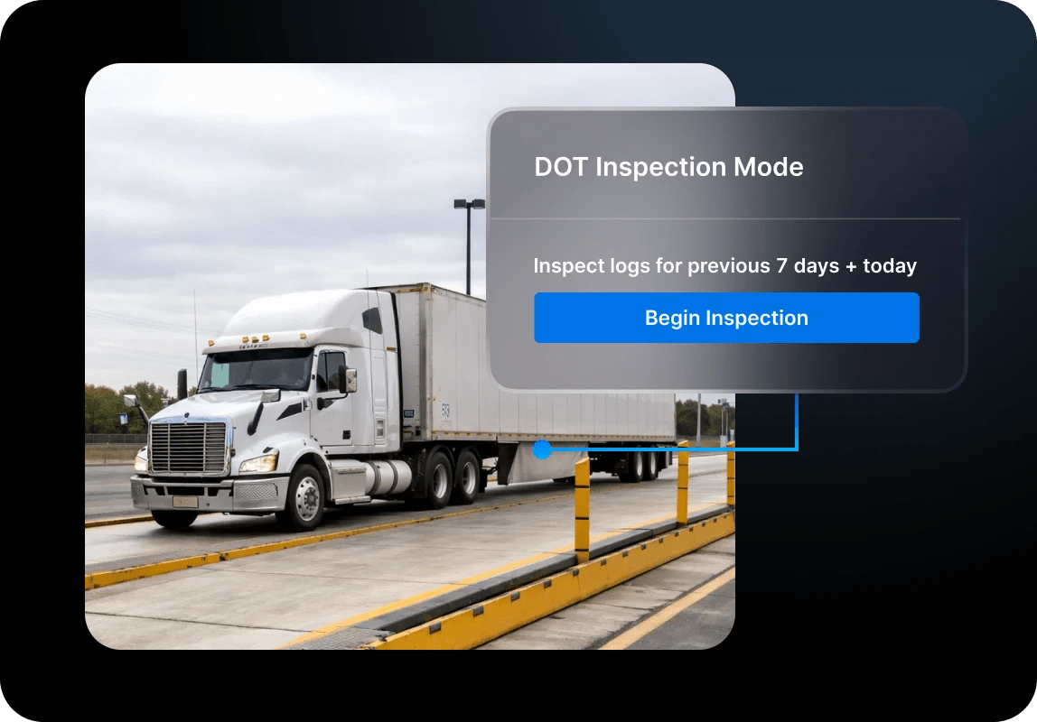 Freight truck in weighing station, with DOT Inspection Mode in app