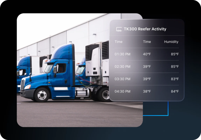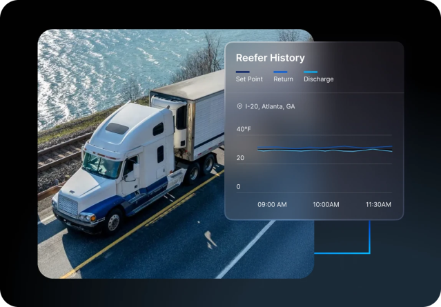 Motive’s Reefer Monitoring solution provides visibility, control and protection to fleets hauling temperature sensitive cargo. Features include temperature, humidity and door tracking, fleet and driver alerts, historic reefer logging, and remote control capabilities.