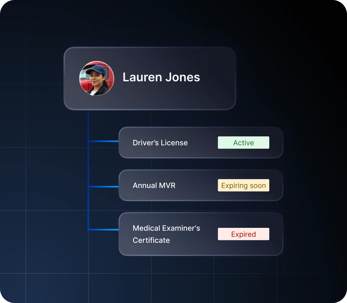 - Get real-time visibility into who is qualified to drive, helping you stay compliant and be ready for audits.