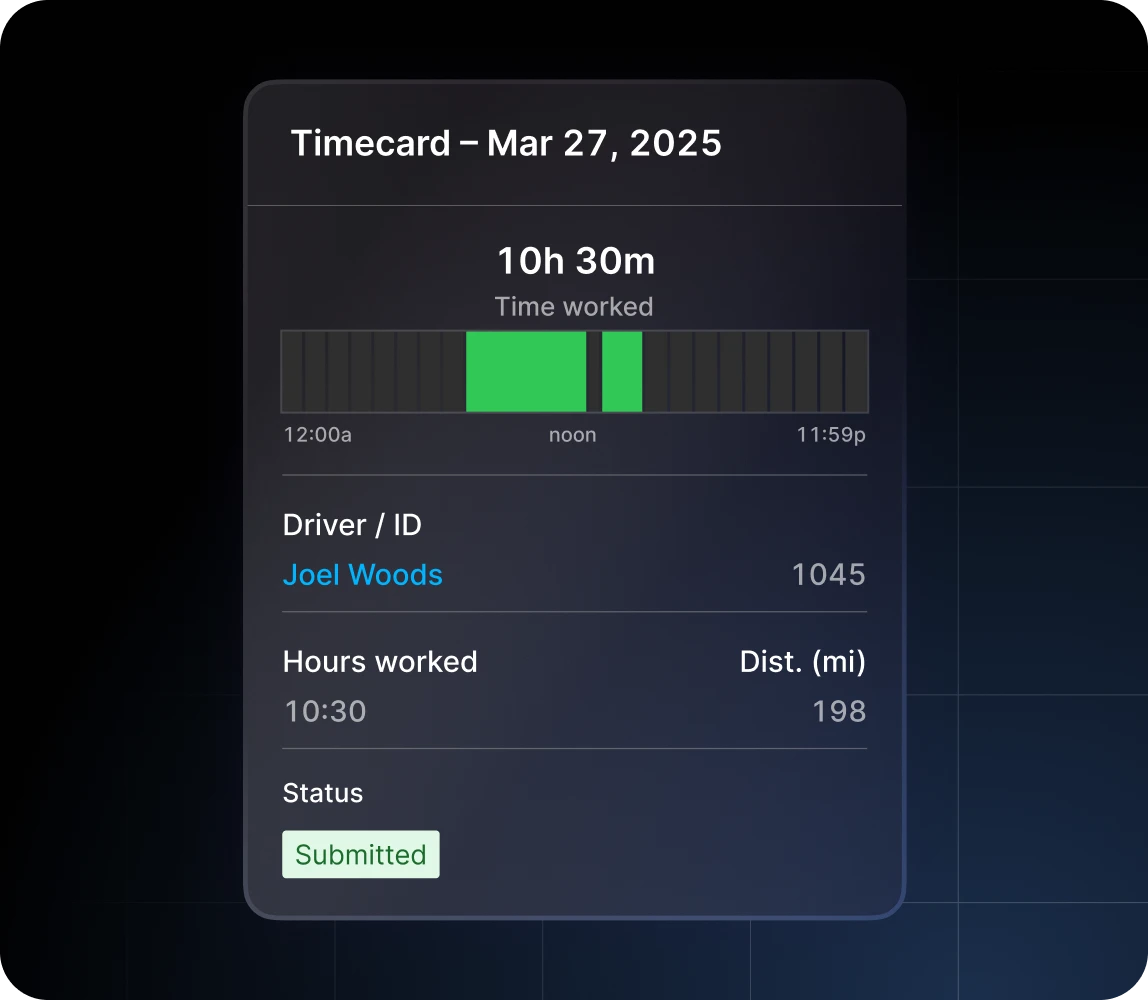 Make it easy for workers to track time and select jobs with the Motive Driver App.
